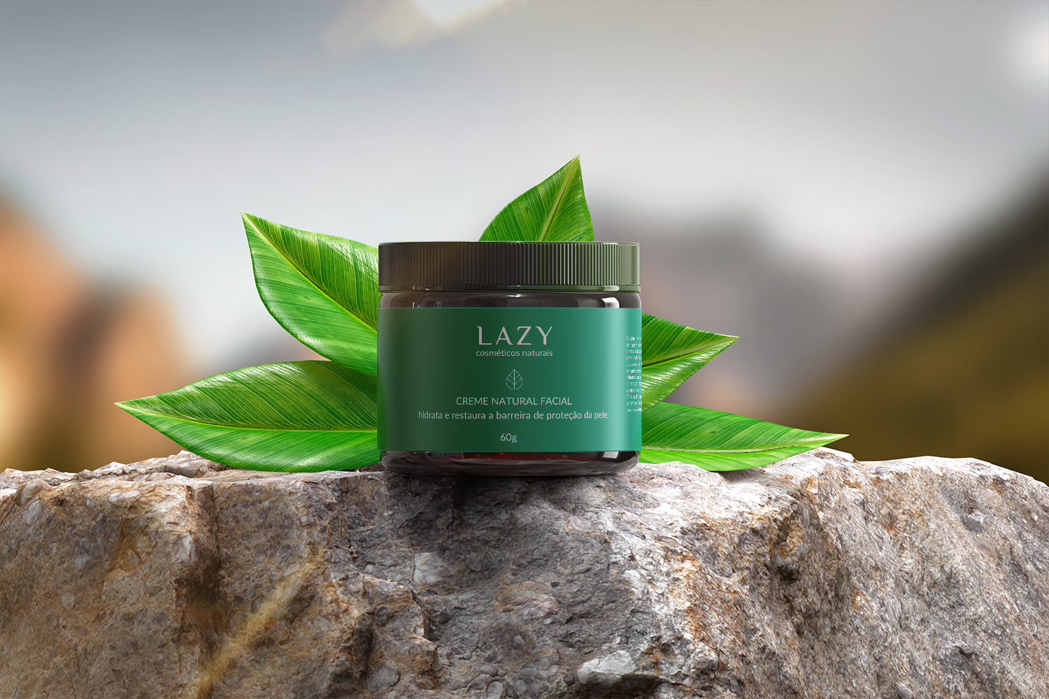 Identidade visual desenvolvida para Lazy Cosméticos Naturais marca brasileira de beleza consciente inspirada na harmonia entre corpo e natureza
