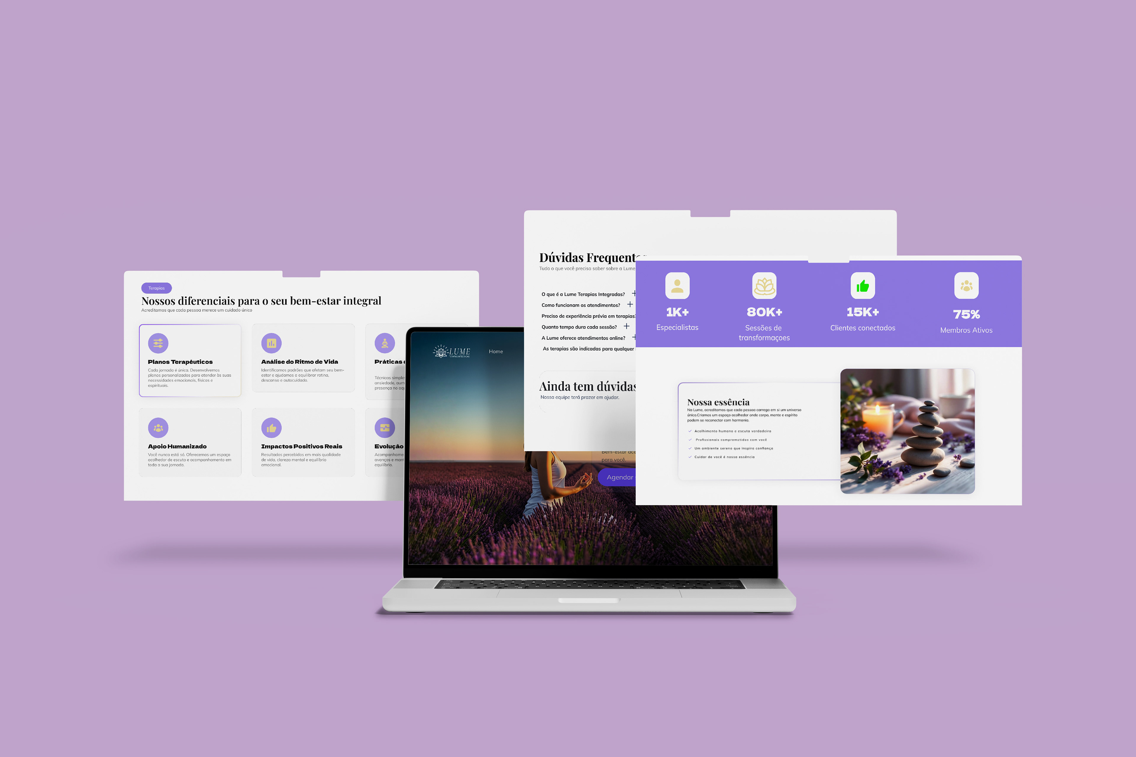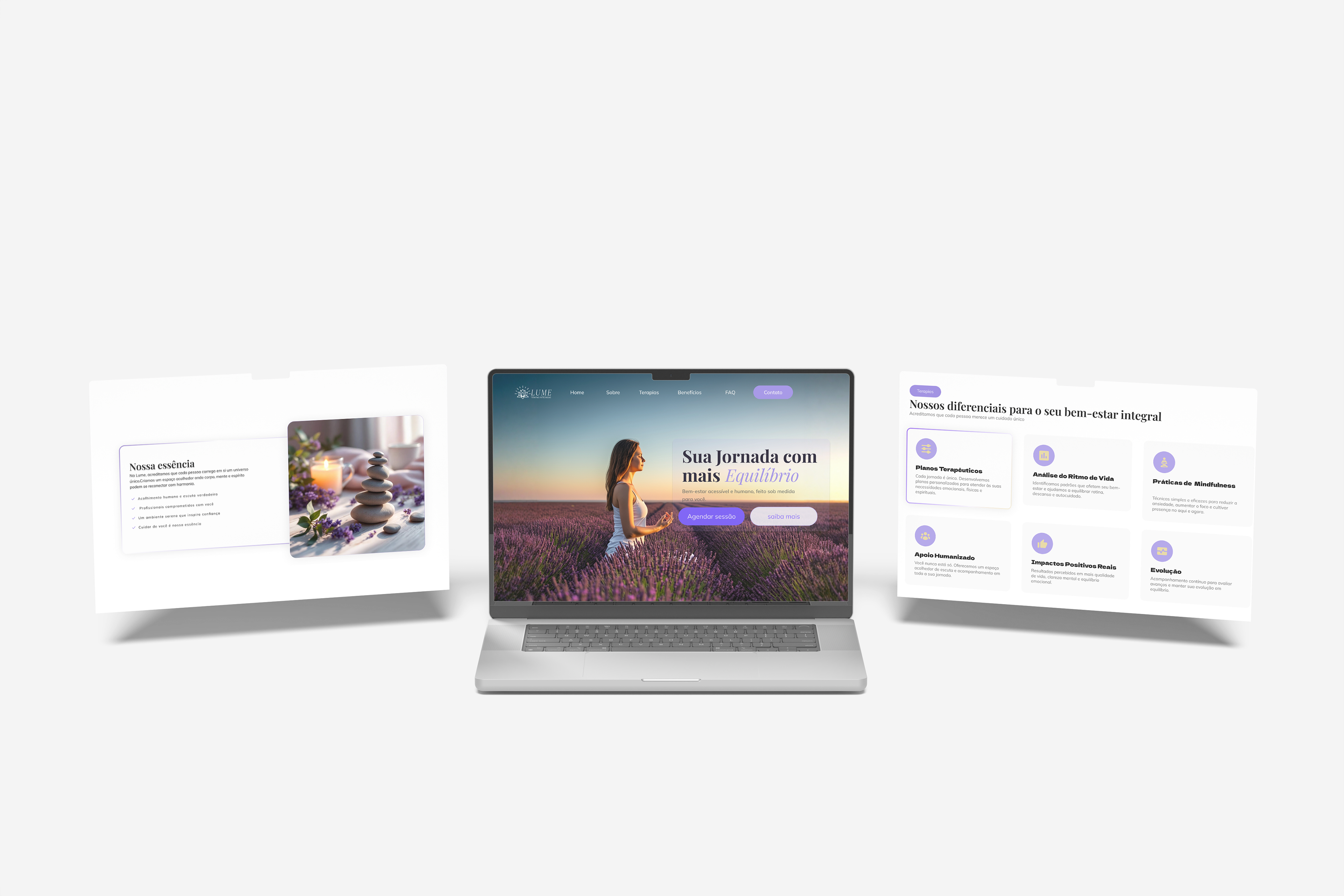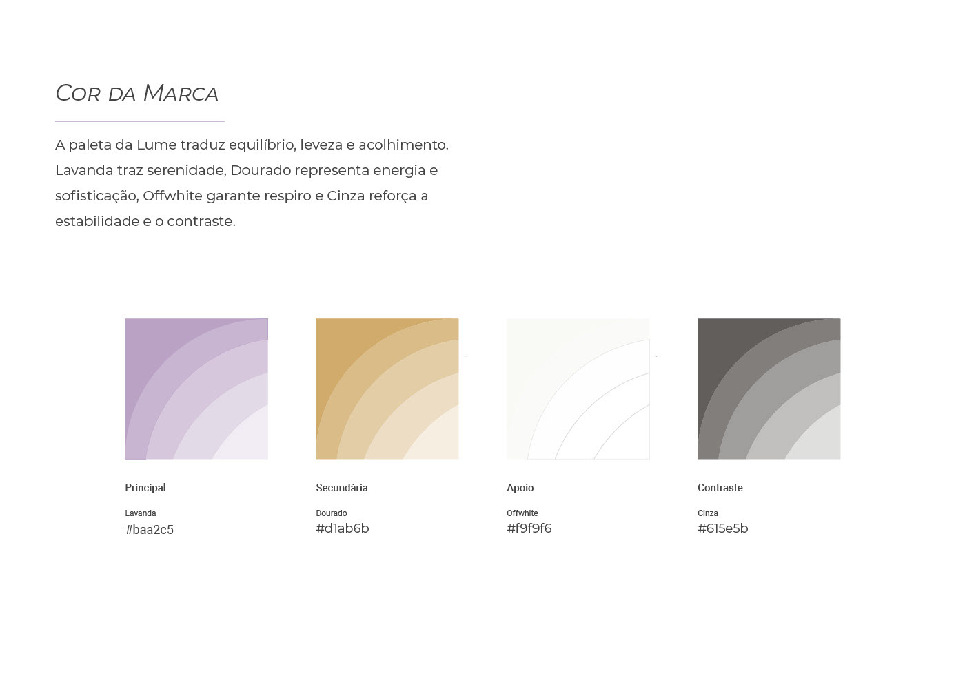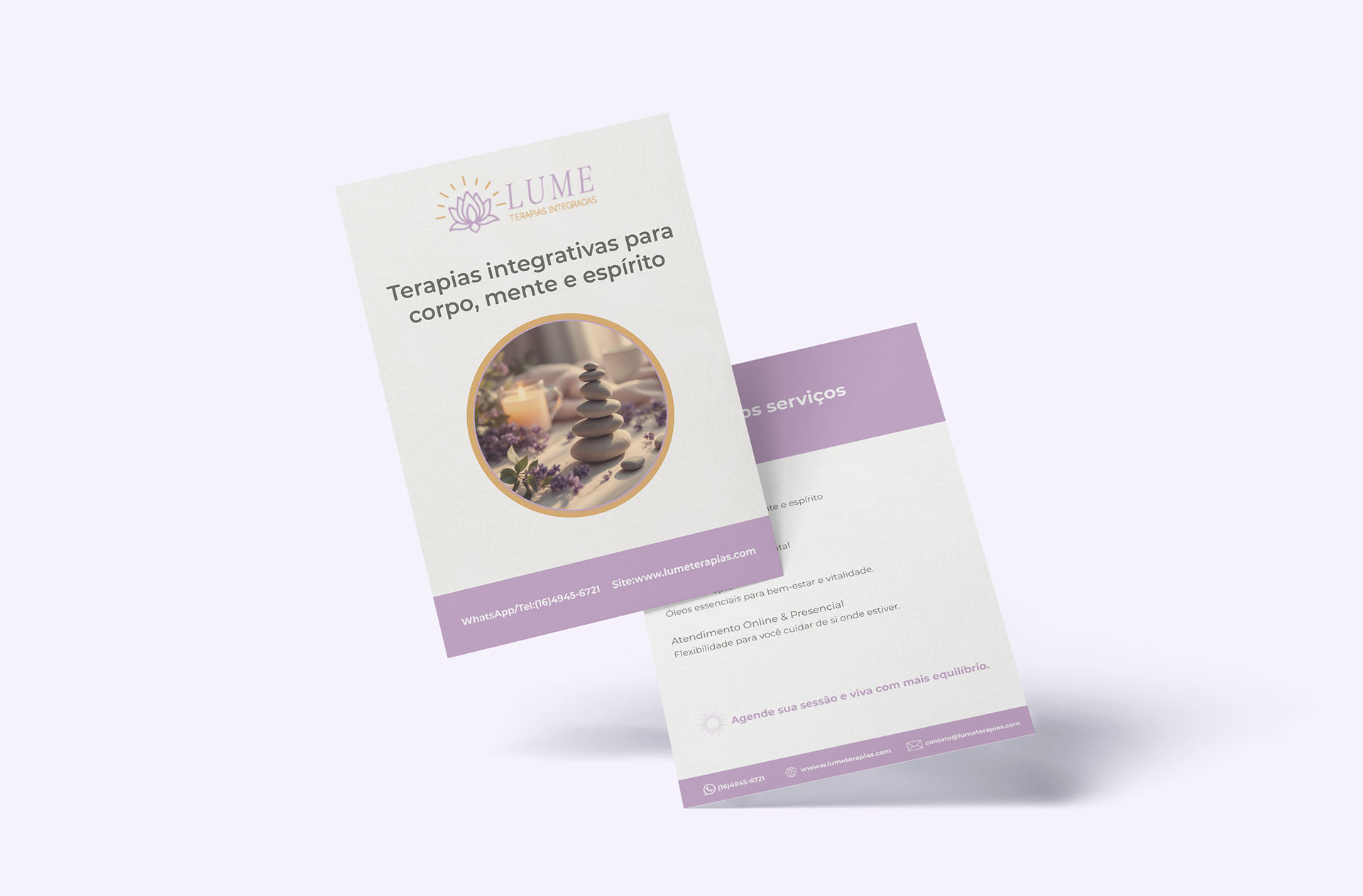A identidade Lume reflete presença, equilíbrio e confiança em todos os pontos de contato.
